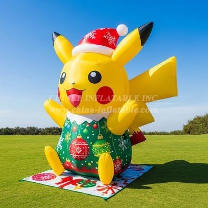 Bring festive cheer and instant crowd appeal to your event with our C1-766 Pikachu Christmas Inflatable Cartoons. This adorable character display features a bright yellow Pikachu wearing a Santa-style hat and a holiday-themed outfit decorated with ornaments and snowflakes. Designed as a decorative showpiece rather than a ride-on attraction, it’s perfect for entrances, photo zones, retail promotions, school fairs, or community celebrations during the holiday season.
