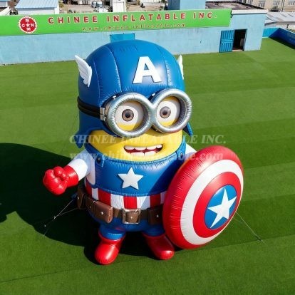 This high-quality inflatable cartoon features the classic Minion yellow body with Captain America's signature blue uniform, complete with the star emblem, his famous red, white, and blue shield, and even the characteristic helmet with wings. The attention to detail is remarkable, from the Minion's signature goggles and cheerful smile to the authentic Captain America accessories.