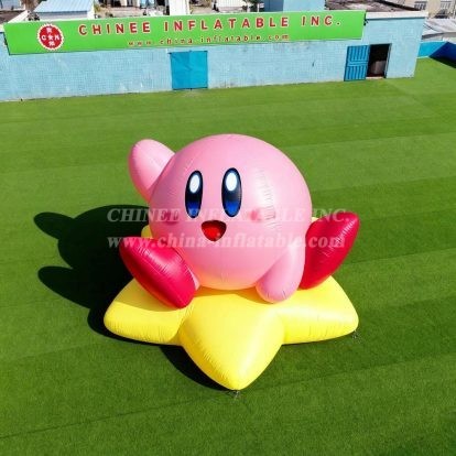Bring the beloved Nintendo character Kirby to life with this incredible Cartoon3-138 Kirby Nintendo Character Inflatable Model Product from Chinee Inflatables Inc.! This eye-catching promotional display features the iconic pink puffball hero in his classic pose, complete with his signature blue eyes, cheerful red smile, and adorable red feet, all while sitting majestically on his famous yellow Warp Star.