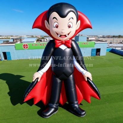 Transform your Halloween festivities or special events into an unforgettable experience with the Cartoon3-255 Vampire Character Inflatable Model Product from Chinee Inflatables Inc. This captivating inflatable features a charming cartoon vampire character dressed in a classic black suit with a dramatic red cape, complete with an eye-catching red bow tie. Standing tall with prominent fangs and friendly red eyes, this delightful vampire brings a perfect balance of spooky and fun to any occasion.