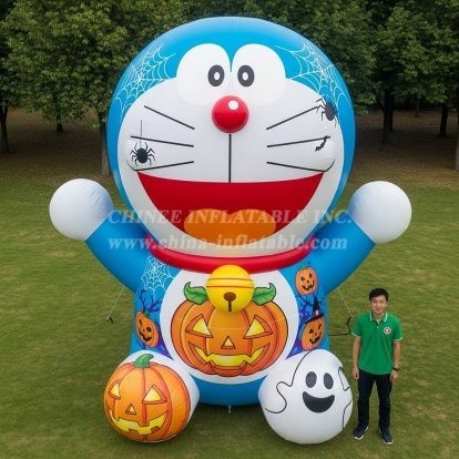 Delight crowds this season with Cartoon3-275 Doraemon Halloween Inflatable Cartoon from Chinee Inflatables. Standing tall with a smiling blue cat figure accented by pumpkins, cobwebs, and friendly ghost graphics, this piece is designed to be a high‑impact visual centerpiece for parks, storefronts, school fairs, and community festivals. As part of our Inflatable Cartoons range, it is decoration-only—perfect for photo ops and themed entrances—without bouncing or sliding components.