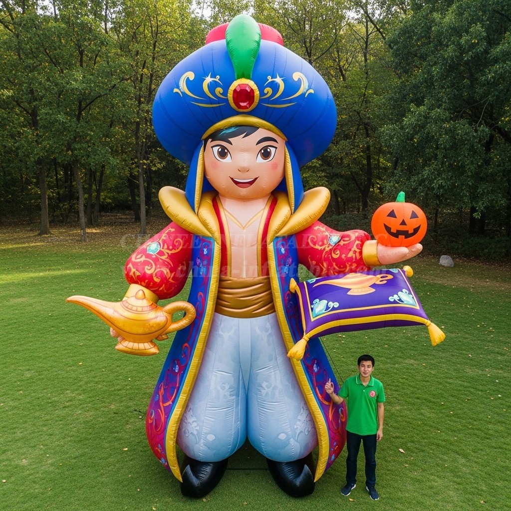 Bring the magic of the Arabian tale to your venue with the Cartoon3-341 Aladdin Theme Inflatable Cartoon from Chinee Inflatables Inc. This towering character features a vibrant turban, ornate robe, magic lamp, and a playful jack-o’-lantern accent—perfect for seasonal promotions or themed events. Designed as a decoration-only inflatable (not for bouncing or sliding), it draws attention instantly at fairs, shopping centers, stage backdrops, photo zones, and rental lineups.