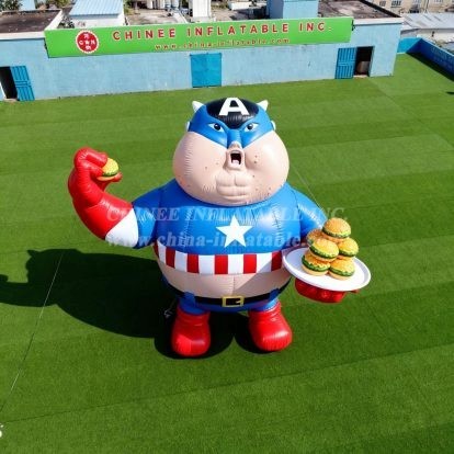 Make your event impossible to miss with our Cartoon3-424 American Style Cat Inflatable Cartoons. This eye‑catching giant features a cheerful, cat‑like character in a bold red, white, and blue outfit, proudly holding a stack of hamburgers—perfect for drawing attention at fairs, restaurants, school festivals, and brand activations. Designed and manufactured by Chinee Inflatables Inc. (established 1998), the display uses durable, commercial‑grade PVC tarpaulin with reinforced stitching and heat‑sealed seams to ensure a crisp shape and reliable outdoor performance.