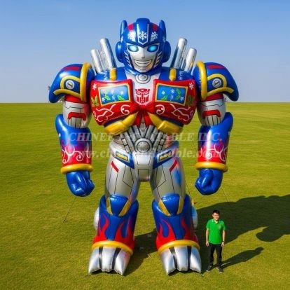 Command attention at any event with our Cartoon3-441 Transformers Robot Inflatable Cartoons display. This towering, larger‑than‑life robot statue brings a bold sci‑fi presence to parks, plazas, fan conventions, and brand activations. Designed by Chinee Inflatables Inc. (est. 1998), the piece features vivid red, blue, and metallic silver panels, stylized flames, and winter accents like snowflakes and holly motifs—perfect for seasonal promotions without losing the futuristic appeal.