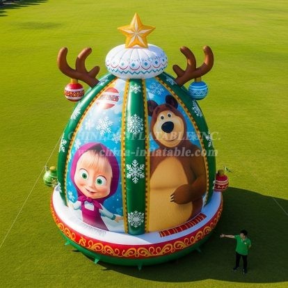 Bring the magic of the holidays to your venue with the Cartoon3-563 Masha and The Bear Christmas Event Party Decoration from Chinee Inflatables Inc. This eye‑catching inflatable is styled like a festive ornament, complete with a star topper, reindeer antlers, and vivid winter graphics featuring beloved characters. Designed as a decoration piece (not a bouncer or slide), it instantly creates a cheerful focal point for town squares, shopping malls, theme nights, school fairs, and photo backdrops at seasonal events.