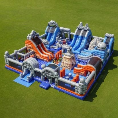 3층, 화염 억제, 비독성 환경 보호. 최고의 소재는 인플레이터블 게임에 매우 중요합니다. 저희 인플레이터블은 왼쪽 사진에서 보듯이 내부에 강한 그물이 두 겹으로 코팅된 고내구성 방화 터폴린으로 만들어졌습니다.