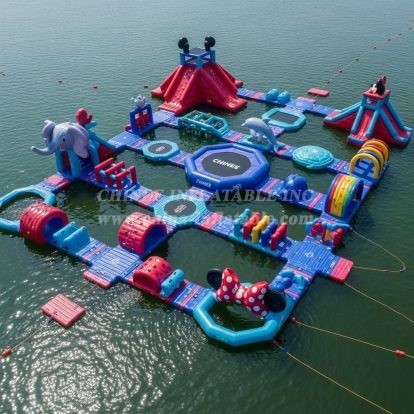 Bring big‑water excitement to your venue with the S293 Ocean Theme Water Park by Chinee Inflatables. This modular floating adventure blends vibrant blues and reds with playful ocean icons to create a striking centerpiece that draws crowds of all ages. The layout features interconnected balance paths, pop‑up obstacles, crawl‑through rollers, mini tramp pads, climbing walls, and multiple slide exits, delivering a thrilling loop of challenges and splash‑downs across a generous footprint.