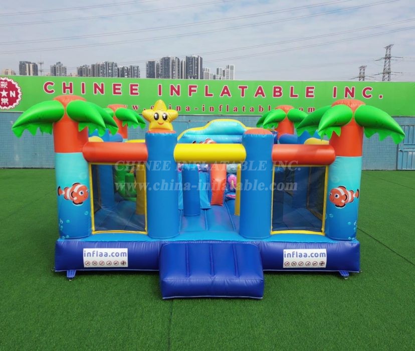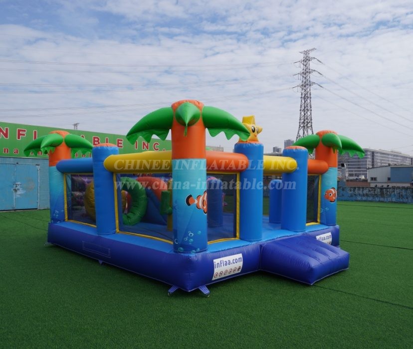 Bring the ultimate tropical adventure to your next event with this stunning Inflatable Ocean-Themed Bounce House Combo, expertly crafted by Chinee Inflatables!