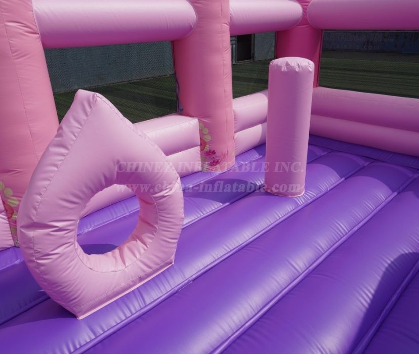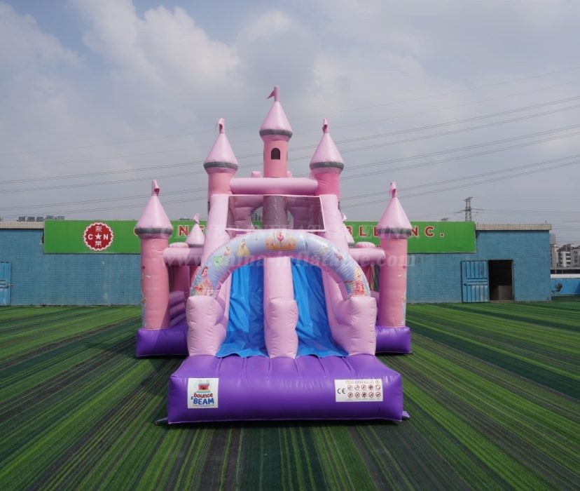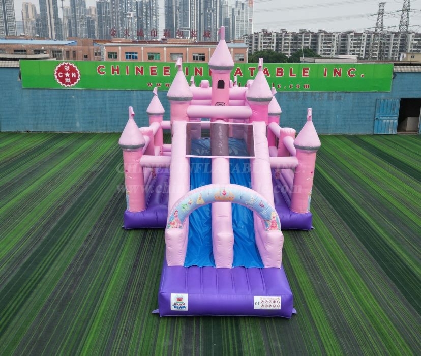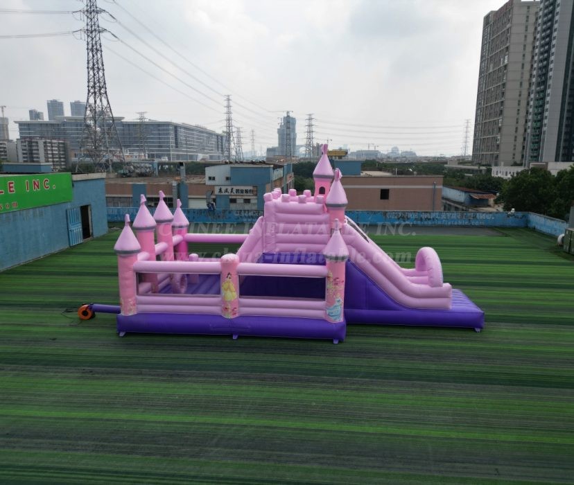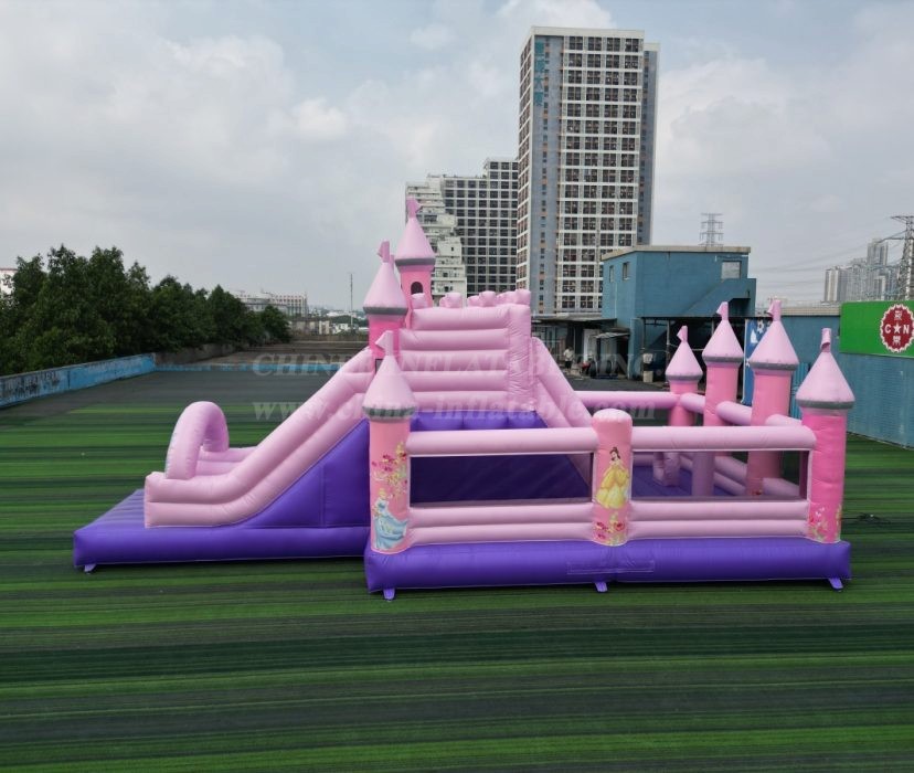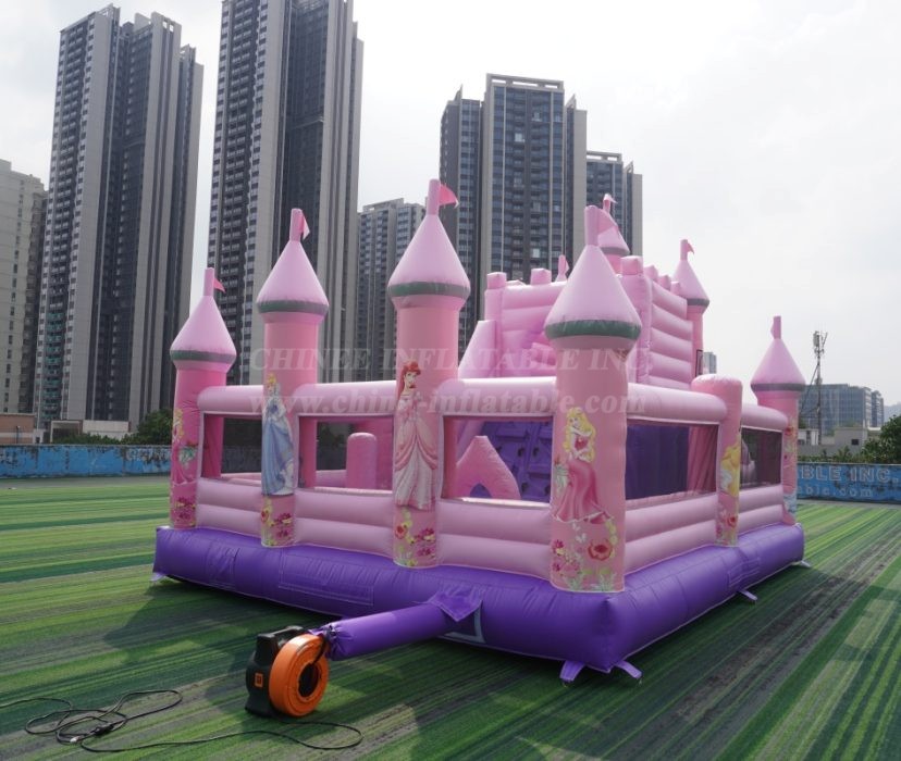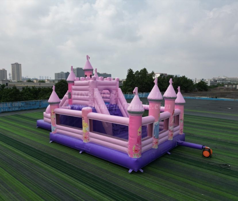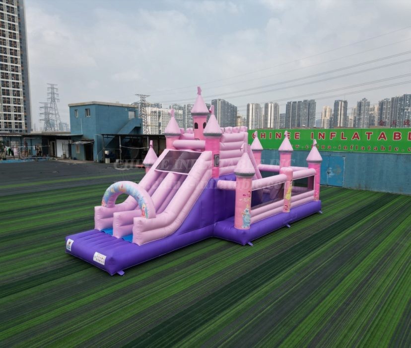 Straight from the Chinee Inflatables factory, this enchanting pink and purple palace is designed to be the crown jewel of any party or event. With its towering turrets, royal flags, and a beautiful archway adorned with classic princesses, this inflatable is an absolute showstopper.