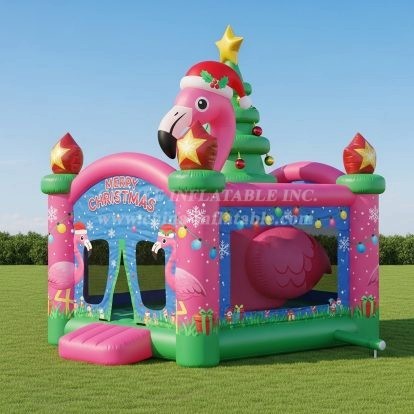 Bring festive cheer to your events with the T2-8588 Christmas Flamingo Inflatable Bouncer from Chinee Inflatables Inc. This delightful bounce house features a playful pink flamingo wearing a Santa hat and a towering Christmas tree with stars and ornaments, creating an eye‑catching centerpiece for holiday parties, school fairs, and winter attractions. The open bouncing area invites kids to jump safely, while mesh windows ensure great visibility and airflow for easy supervision.