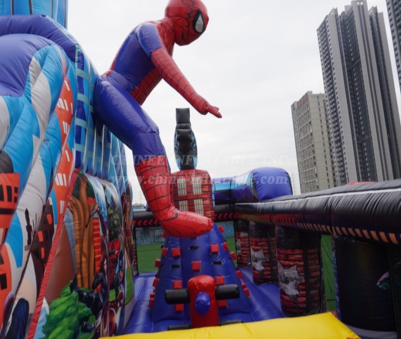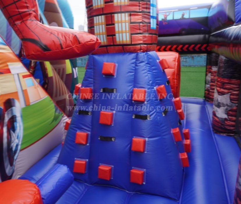 Swing into action with the most incredible superhero inflatable on the market! Your friendly neighborhood hero is here in a BIG way with the Superhero City Inflatable Playland, direct from the factory at Chinee Inflatables.
