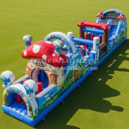 T7-4418 The Smurfs Theme Inflatable Obstacle Course