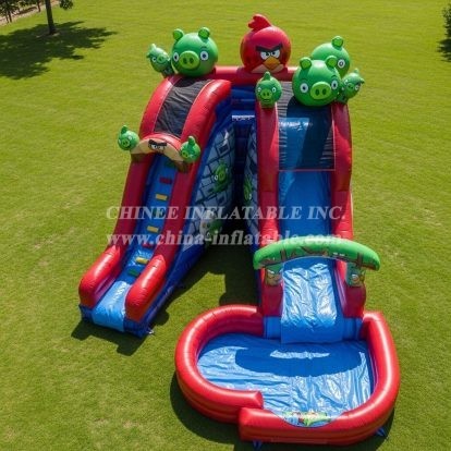 T8-7110 Angry Birds Theme Inflatable Water Slide