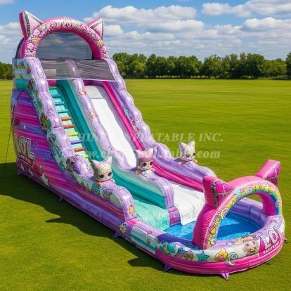 Bring the wow factor to your next event with the T8-8762 L.O.L. Surprise Inflatable Water Slide from Chinee Inflatables Inc. This vibrant single-lane slide features bold L.O.L. Surprise artwork, playful cat-ear accents, and rainbow-inspired colors that instantly capture attention. A wide climbing lane with easy-grip steps leads to a tall, exciting drop into a cushioned splash pool, delivering hours of cool, refreshing fun for kids.