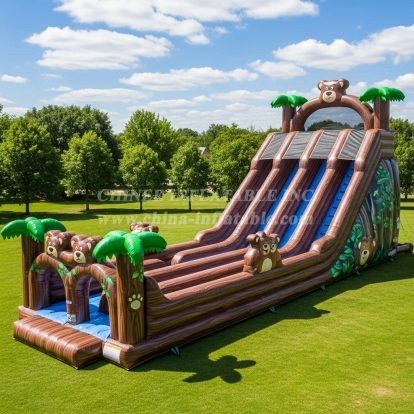 The T8-8822 Bear Inflatable Slide from Chinee Inflatables brings outdoor fun to a whole new level, featuring adorable bear designs and a charming jungle theme. Built with durable materials and vibrant graphics, this multi-lane slide offers thrilling entertainment for kids and adults alike. Perfect for parks, school events, and festivals, it combines safety, excitement, and eye-catching appeal. Let your guests enjoy hours of sliding adventure in this nature-inspired inflatable attraction.