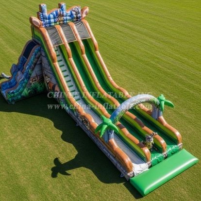 Experience the thrill of adventure with the T8-8839 Jungle Theme Inflatable Dry Slide from Chinee Inflatables Inc. Featuring vibrant jungle artwork, playful lions and cheeky monkeys, this massive multi-lane slide delivers high-energy fun for all ages. Built with durable materials and expert craftsmanship, it’s perfect for outdoor events, amusement parks, or festivals. Bring the wild jungle excitement to your venue and let kids slide into a world of laughter and adventure.