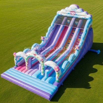 Bring vibrant fun to your events with the T8-8868 Rainbow Inflatable Slide by Chinee Inflatables. Featuring a dazzling rainbow arch, whimsical unicorn designs, and soft cloud details, this slide is perfect for children’s parties and festivals. Built with high-quality materials and safety features, it offers a thrilling yet secure ride. Make your celebration unforgettable with this colorful and enchanting inflatable centerpiece.
