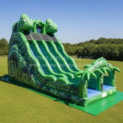 Experience thrilling adventures with this Chameleon Inflatable Slide, featuring vibrant jungle-theme...
