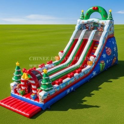 festive season with this vibrant Christmas Inflatable Water Slide. Featuring colorful decorated Christmas trees, cheerful snowmen, and wrapped gift designs, this attraction adds joy and excitement to any winter event. Perfect for holiday parties and outdoor winter fun, it brings a magical experience for kids and families.