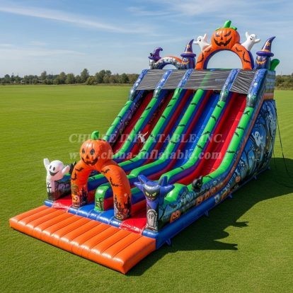 Bring spooky fun to your events with this Halloween Inflatable Slide featuring pumpkins, friendly ghosts, and creepy spider decorations. Perfect for thrilling kids and adults alike, this slide combines festive Halloween themes with safe, exciting inflatable entertainment. The eye-catching design makes it a standout attraction at any fall celebration or party.