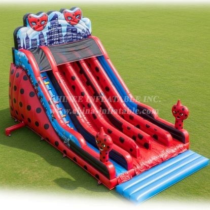 This vibrant Ladybug themed inflatable slide offers three thrilling lanes for multiple users at once. Its colorful design with ladybug spots and playful characters engages kids in active fun and friendly competition. Perfect for outdoor events, parties, and entertainment venues seeking a bold, eye-catching attraction.