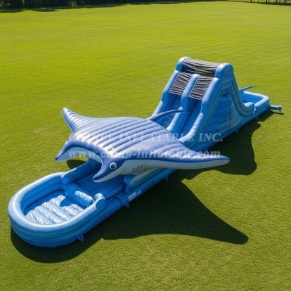 Make a splash with our manta ray Inflatable Water Slide — a spectacular blue, sea-themed attraction featuring a giant manta head, dual sliding lanes, and a splash pool. Built from heavy-duty PVC with reinforced seams, non-slip steps, and safety netting for supervised play. Ideal for backyard parties, rentals, and events; fast setup and easy cleaning for endless ocean-themed fun.