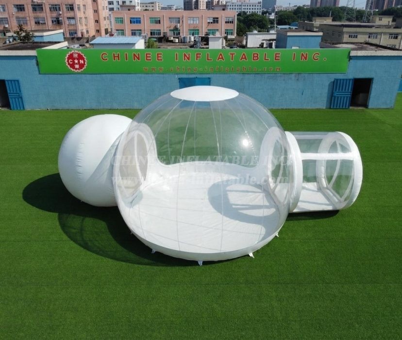 Translucent and half-transparent designs are also available. Additional variants include beach-friendly bubbles that put you right up next to the water, and tree-suspended versions that wrap around trunks and hover over the ground. Created from UV-reflecting recyclable materials, these structures can be set up in a matter of minutes and remain inflated via continuously-running silent pumps that automatically keep up a constant internal pressure.Transparent bubble tent is favored for its wide application for advertising, camping, holiday leisure outdoor activities, trade shows, exhibitions, promotion, outdoor shelter, etc.