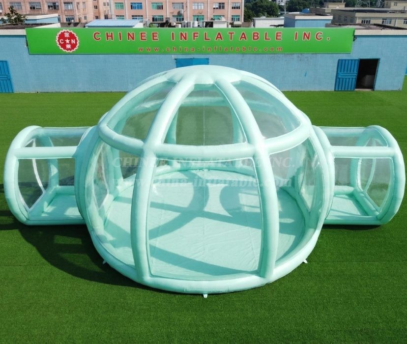 Translucent and half-transparent designs are also available. Additional variants include beach-friendly bubbles that put you right up next to the water, and tree-suspended versions that wrap around trunks and hover over the ground. Created from UV-reflecting recyclable materials, these structures can be set up in a matter of minutes and remain inflated via continuously-running silent pumps that automatically keep up a constant internal pressure.Transparent bubble tent is favored for its wide application for advertising, camping, holiday leisure outdoor activities, trade shows, exhibitions, promotion, outdoor shelter, etc.