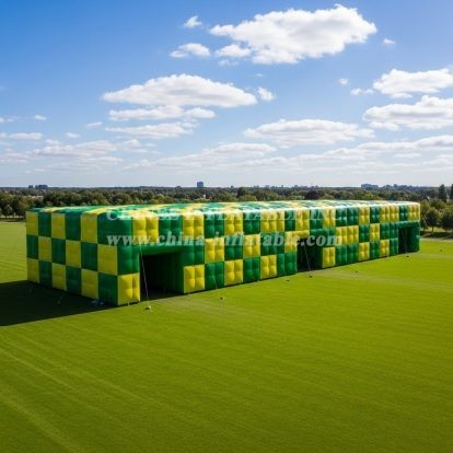 Experience versatile event space like never before with the Tent1-6592 Inflatable Cube Tent from Chinee Inflatables Inc. Its bold green and yellow checkered design creates an eye-catching presence, while the spacious interior can accommodate various activities, from exhibitions to sports events. Made with premium, durable materials, this inflatable tent is quick to set up and takedown, making it perfect for outdoor gatherings or temporary venues. Bring efficiency and style together for your next event.